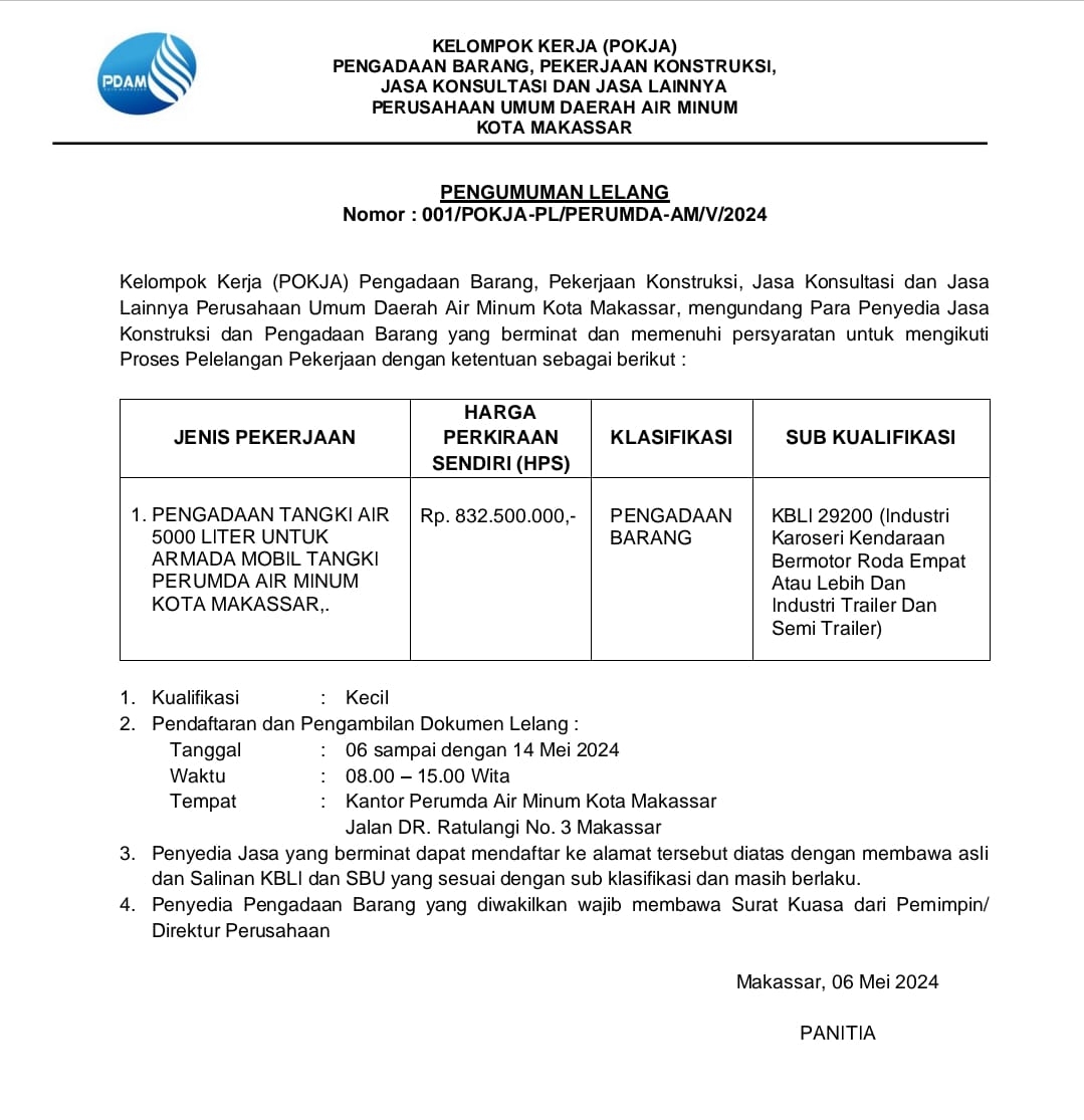 Musim haji tahun 2024 di Indonesia segera tiba, begitupun di Sulawesi Selatan, Sabtu/11 Mei 2024 para calon jemaah haji akan mulai memasuki Asrama Haji Makassar. Salah satu kebutuhan yang vital di asrama haji yaitu ketersediaan air bersih bagi para calon jemaah haji baik sebelum berangkat maupun sa